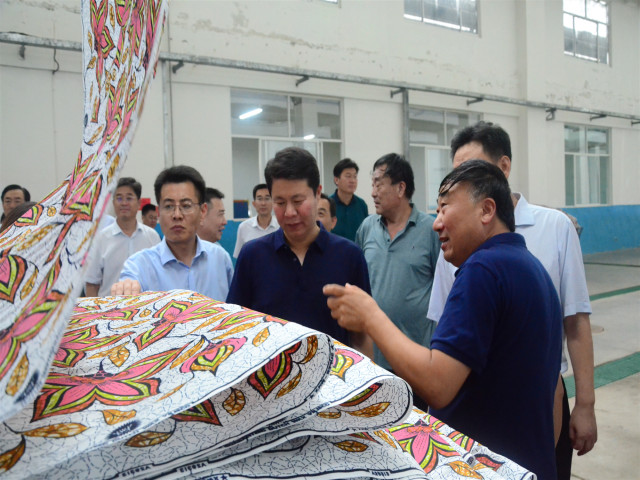 7月25日,濱城區(qū)高質(zhì)量發(fā)展現(xiàn)場觀摩團(tuán)領(lǐng)導(dǎo)一行到公司觀摩。區(qū)委書記、黨校校長張寶亮,區(qū)委副書記、區(qū)長張瑞杰等現(xiàn)場參觀了公司科技產(chǎn)業(yè)園花布二智能生產(chǎn)車間、工程技術(shù)研究院、創(chuàng)意中心等處。