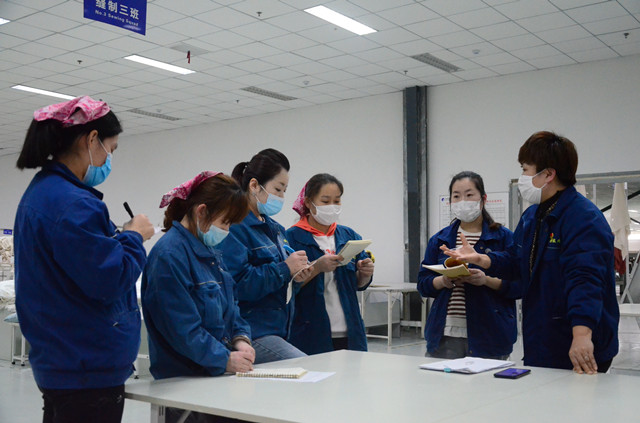 生產(chǎn)運行效率如何進(jìn)一步提升,新產(chǎn)品工藝標(biāo)準(zhǔn)如何培訓(xùn)才更有執(zhí)行力……圍繞日常生產(chǎn)工作中這些看似簡單的問題,家紡成品車間從車間管理者到各班組長和一線員工代表,集中在生產(chǎn)現(xiàn)場開展“腦風(fēng)暴”,每次針對一個需要改進(jìn)的內(nèi)容直來直去,不僅占用精力小,而且產(chǎn)生的改進(jìn)效果好。