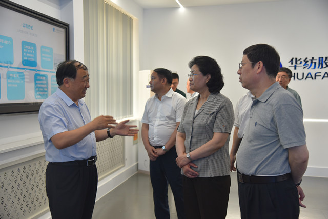吳翠云一行先后參觀了智云中心、家紡展廳、研發(fā)創(chuàng)意中心、工程技術(shù)研究院等部門,聽取了王力民對(duì)公司項(xiàng)目建設(shè)情況的介紹。吳翠云對(duì)公司打造智能綠色工廠給予了充分肯定,希望企業(yè)能夠進(jìn)一步提質(zhì)增效,促進(jìn)產(chǎn)業(yè)結(jié)構(gòu)優(yōu)化,實(shí)現(xiàn)建成國(guó)內(nèi)第一家全數(shù)字化、低消耗、高效能的“綠色印染工廠”。她同時(shí)表示,省政協(xié)將一如既往地支持和服務(wù)企業(yè)發(fā)展,幫助企業(yè)協(xié)調(diào)解決發(fā)展中出現(xiàn)的困難和問題,助力企業(yè)經(jīng)濟(jì)發(fā)展。
