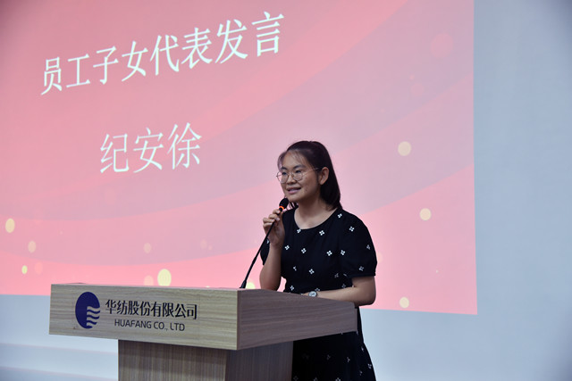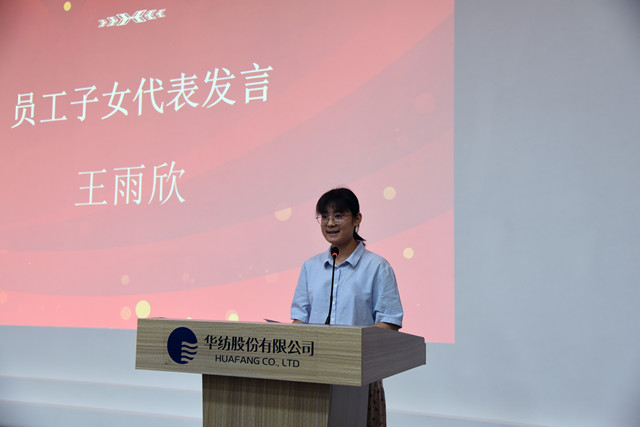 員工子女代表紀(jì)安徐、王雨欣在發(fā)言中,對家庭和公司表達(dá)了感激之情,并結(jié)合自身的學(xué)習(xí)情況談了個(gè)人的感受和對未來的憧憬。營銷管理部部長楊霞作為家長代表發(fā)言,她表示,公司對員工家庭的關(guān)心,讓大家深深感受到華紡大家庭的溫暖,也享受到了公司發(fā)展的成果。