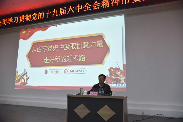 導(dǎo)讀:12月18日,市委宣講團(tuán)成員、市政協(xié)臺(tái)港澳僑和外事委員會(huì)副主任朱光輝來到公司,對(duì)黨的十九屆六中全會(huì)精神進(jìn)行專題宣講。