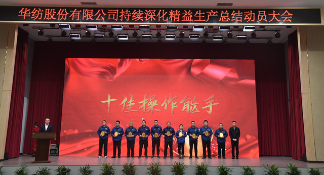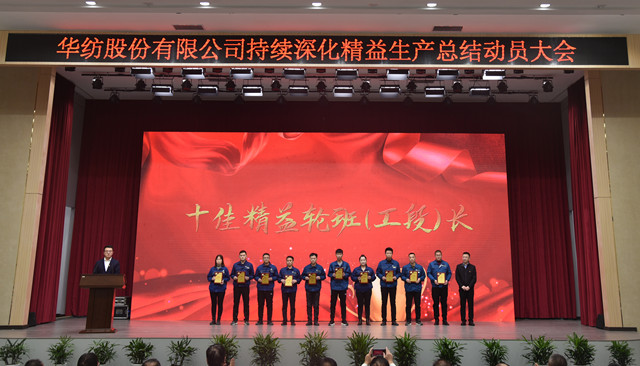 會上,公司董事長盛守祥為2021年度優(yōu)秀團隊、勞動模范頒獎;總經(jīng)理閆英山為華紡工匠、十佳精益輪班(工段)長、十佳技術(shù)能手、十佳操作能手、優(yōu)秀員工代表頒獎;質(zhì)量總監(jiān)李風明為優(yōu)秀CQI項目、創(chuàng)新攻關(guān)項目、優(yōu)秀精益機組代表頒獎。公司對在過去一年的“我與效益提升”工作中表現(xiàn)良好的原料運營公司等10個部門給予了通報表揚;“退城進園”暨“智能綠色工廠建設項目”整體建設與搬遷,成為“2021-華紡年度感動”內(nèi)容。