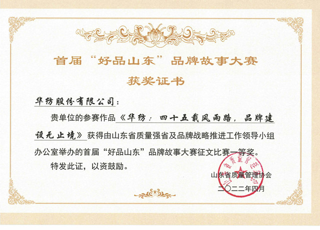 華紡榮獲首屆“好品山東”品牌故事大賽一等獎