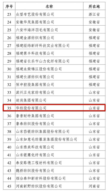 公司躋身全國(guó)重點(diǎn)培育紡織服裝百家品牌