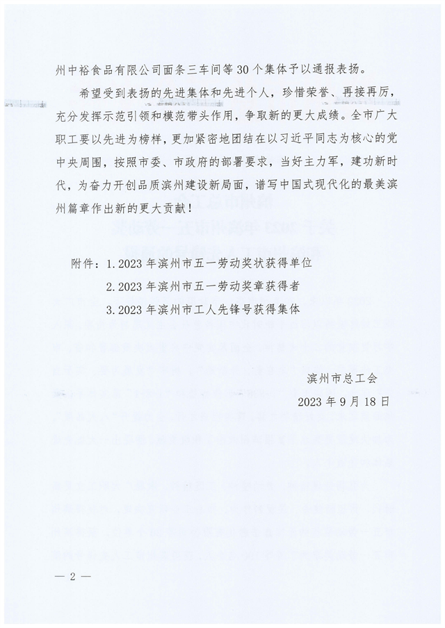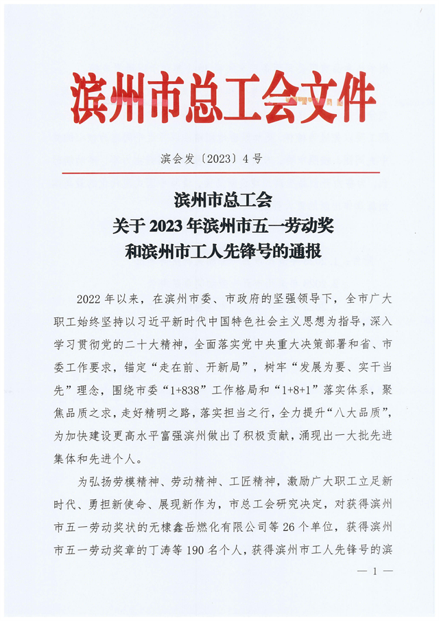 導(dǎo)讀:近日,濱州市總工會(huì)發(fā)布了“關(guān)于2023年濱州市五一勞動(dòng)獎(jiǎng)和濱州市工人先鋒號的通報(bào)”,
