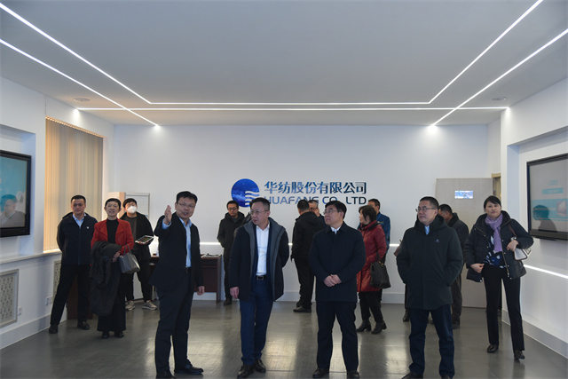 1月27日,中國紡織工業(yè)聯(lián)合會副會長楊兆華一行到華紡股份調(diào)研指導工作。市工信局黨組書記、局長姚振祥,濱城區(qū)副區(qū)長袁見,公司黨委書記、董事長盛守祥陪同調(diào)研。