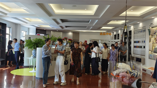 在華紡股份黨委書記、董事長(zhǎng)盛守祥的帶領(lǐng)下,大家來到華紡老廠區(qū),那里陳列著一幅幅彌足珍貴的歷史照片,它們鐫刻著大家共同奮斗的往昔歲月。在這些影像前,老員工們的思緒仿佛瞬間被拉回到那激情澎湃的年代,熟悉的面容、難忘的瞬間,一一重現(xiàn)眼前,喚起了無數(shù)美好回憶。緊接著,大家又來到華紡股份新廠區(qū),參觀了智云中心、檢測(cè)中心、綜合辦公區(qū)、服裝面料公司、花布公司、家紡公司、創(chuàng)意中心、工程技術(shù)研究院等區(qū)域。每一步腳印,皆見證著公司的歷史演進(jìn);每一處細(xì)節(jié),皆彰顯出公司對(duì)技術(shù)創(chuàng)新與產(chǎn)品升級(jí)的執(zhí)著追求。