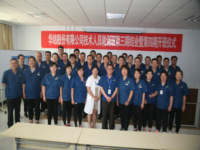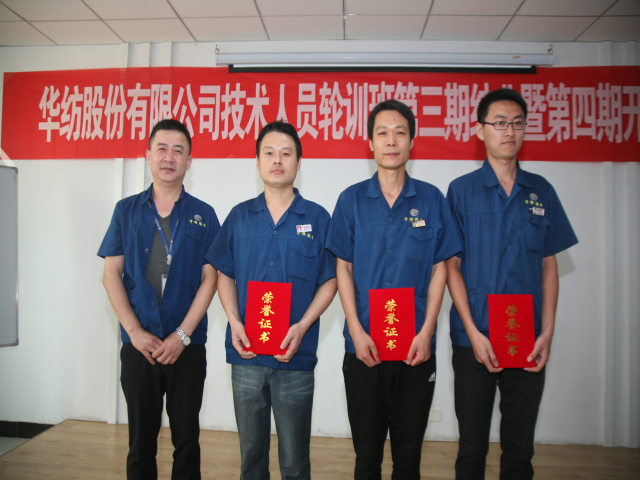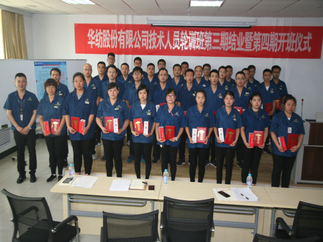 6月18日,公司專業(yè)技術(shù)輪訓(xùn)班第三期結(jié)業(yè)暨第四期開班儀式,在公司工程技術(shù)研究院舉行。儀式上,工程技術(shù)研究院副院長孫紅玉對第三期輪訓(xùn)工作進(jìn)行了總結(jié);總工程師羅維新宣讀了《關(guān)于對染整專業(yè)技術(shù)培訓(xùn)班(第三期)馬士國等35人準(zhǔn)予結(jié)業(yè)的通報》、《關(guān)于對染整專業(yè)技術(shù)培訓(xùn)班(第三期)優(yōu)秀團(tuán)隊(duì)、優(yōu)秀學(xué)員的表彰決定》、《關(guān)于對染整專業(yè)技術(shù)培訓(xùn)班(第四期)學(xué)員組成的通報》;總經(jīng)理閆英山為第三期輪訓(xùn)班結(jié)業(yè)學(xué)員頒發(fā)結(jié)業(yè)證書,為優(yōu)秀團(tuán)隊(duì)花二車間小組及馬士國、李義、陳愛民等三名優(yōu)秀學(xué)員頒發(fā)獎狀證書,為第四期學(xué)員頒發(fā)了專業(yè)學(xué)習(xí)書籍;王金亮、馬士國、商曉峰分別代表往期學(xué)員、本期學(xué)員和下期學(xué)員發(fā)言;公司黨委書記、董事長王力民圍繞堅(jiān)持“求學(xué)、求知、求真、求實(shí)”的作風(fēng)信條做了重要講話。