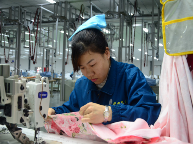 導(dǎo)讀:今年27歲的周之平是公司家紡成品車間吊掛二班的一名縫制工,以目前正在生產(chǎn)的一款被罩產(chǎn)品為例,她每天日均產(chǎn)量達(dá)到了220件,在公司同序列工種中保持領(lǐng)先。