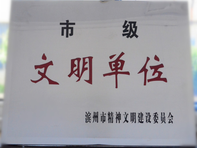 日前,公司收到濱州市精神文明建設(shè)委員會頒發(fā)的“市級文明單位”榮譽(yù)稱號獎牌,這是公司首次獲得該項(xiàng)榮譽(yù),也是公司精神文明建設(shè)工作取得的又一優(yōu)異成績。